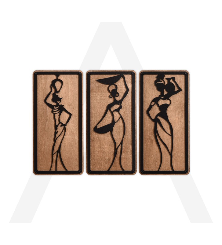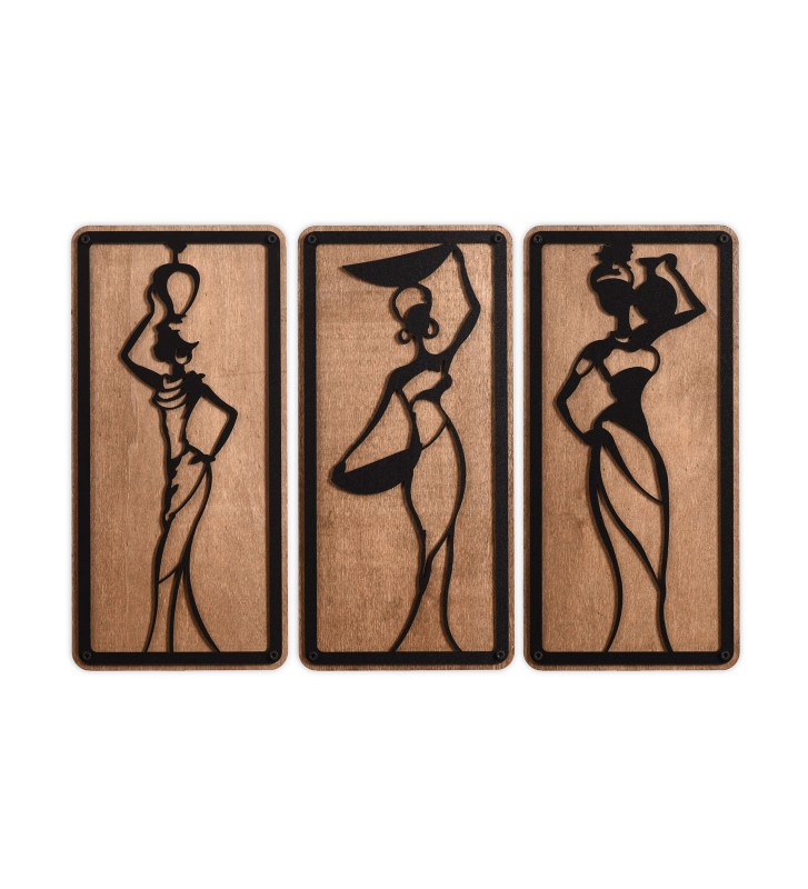 3 Parça Afrikalı Kadınlar Dekoratif Ahşap Duvar Tablosu.
